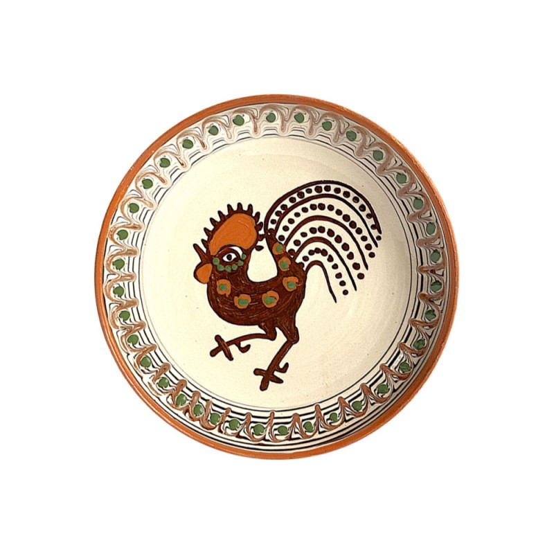 The plate is made by Costel and Georgeta Popa, from Horezu, Valcea County. The Horezu pottery is unique in Romania and is known all over the world. Considered "a unique traditional craft", Horezu pottery has been included in UNESCO Intangible Cultural Heritage since 2012.